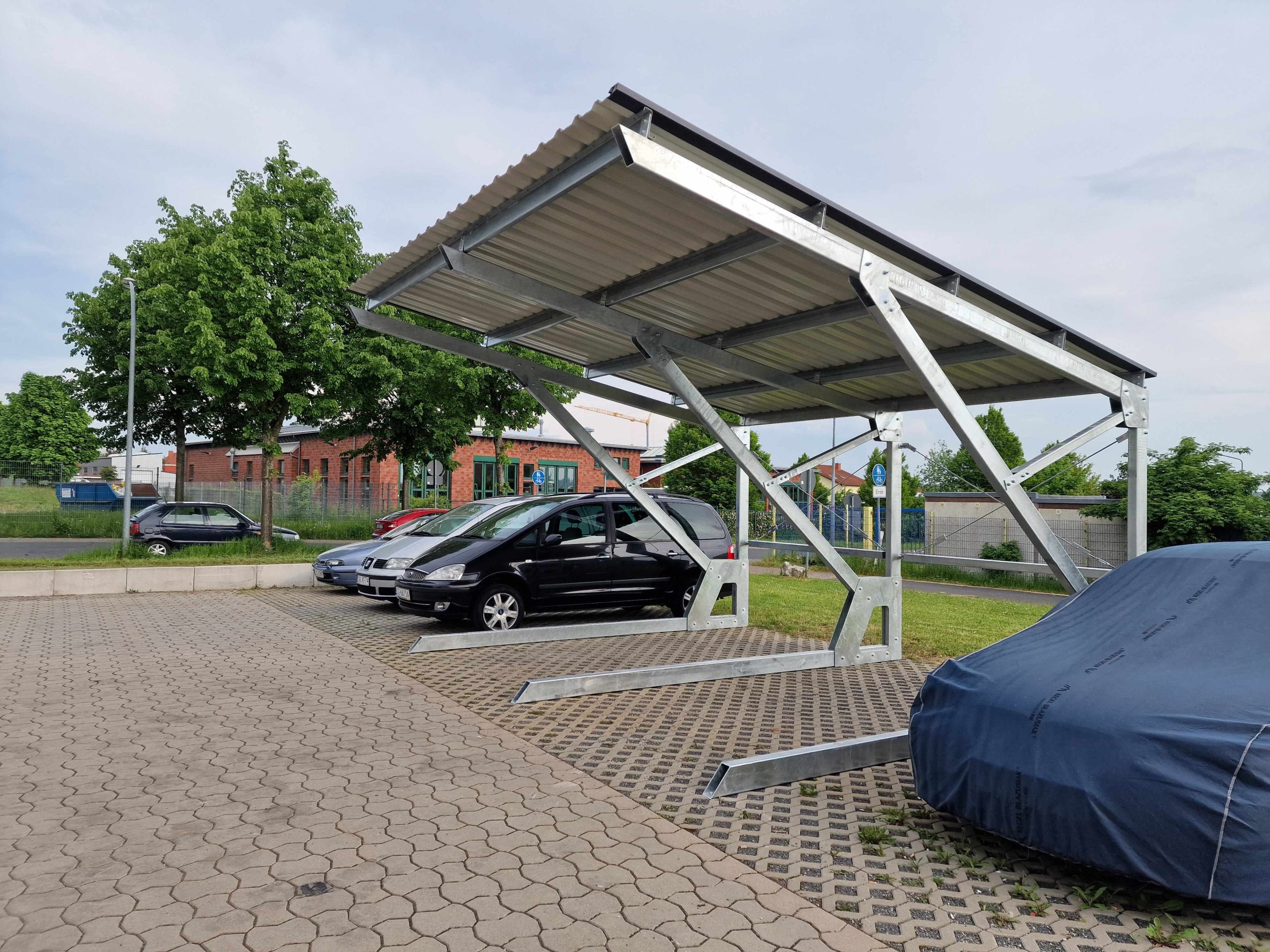 Acest model de carport se distinge printr-un design modern, industrial și extrem de practic, fiind o soluție robustă pentru protecția vehiculelor.